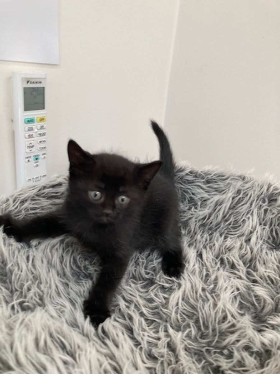 Suki is a little black rocket, very mischievous and loves a cuddle. He enjoys rumbling with his siblings and is always in the thick of it.