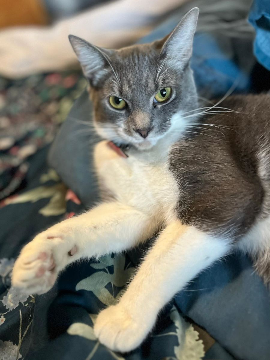 Storm tends to be independent and has recently started seeking more human attention, even jumping on her humans bed to get pats.