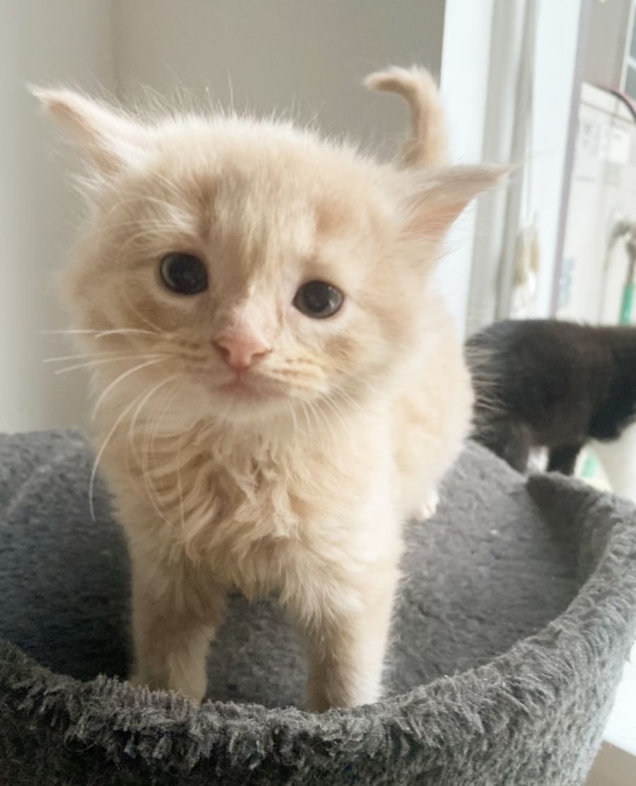 Flossy is everything that you would want in a little kitten! She will roll on her back for tummy rubs, sleep on your neck, trot after you and gives the cutest little chirps!