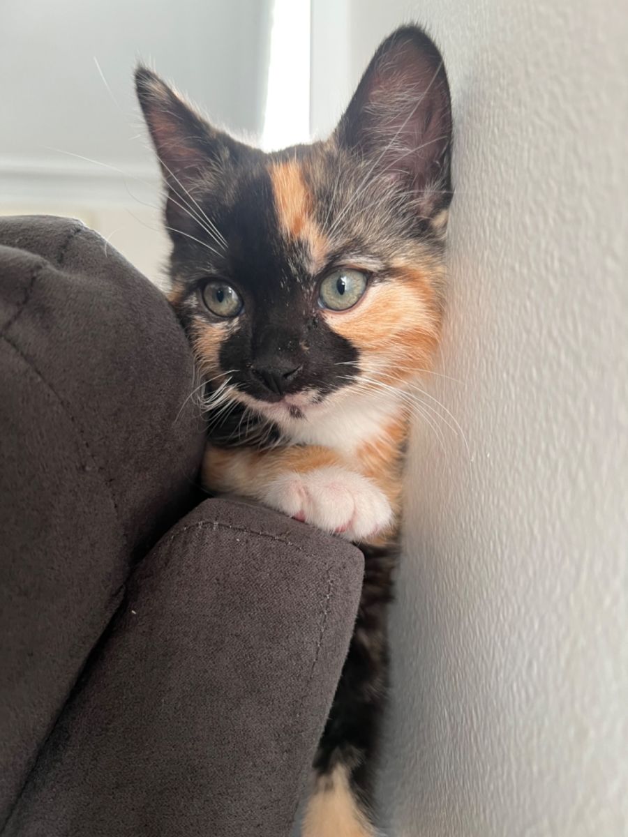 Hi, I'm Penny! My siblings and I were found abandoned at only a few weeks old at Wakeley Vet Hospital, but luckily we were taken in and handraised by one of the nurses there. Now I'm 8 weeks old and looking for my forever home!