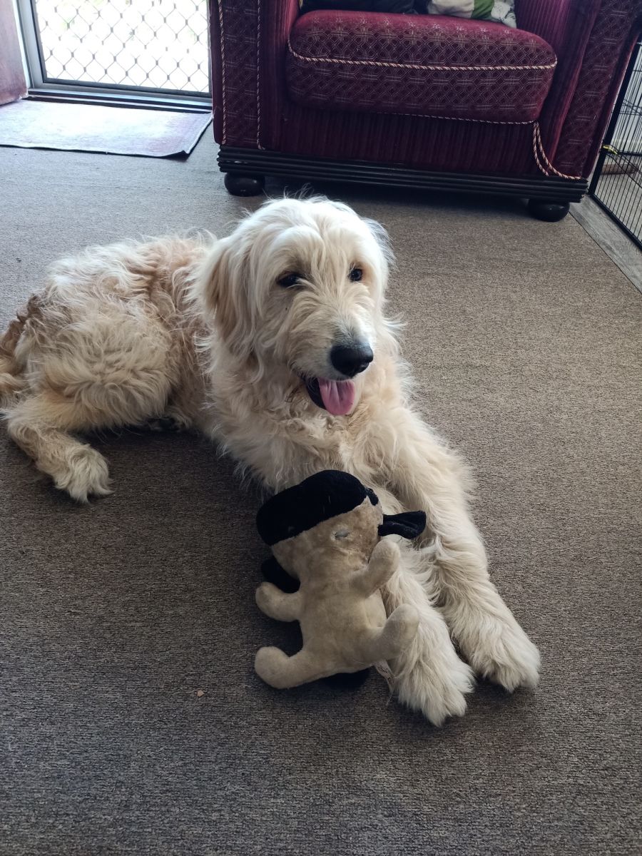Romeo will need grooming and brushing and is a very low shedder, he loves other dogs and has lived with cats and he is fine with them.
