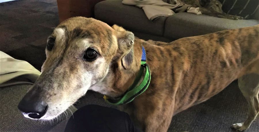 Candy is comfortable with pet life and living in a home and there have been no accidents with toileting. She has found the couch (typical greyhound!) but is also just as happy to sleep on a comfy dog bed.