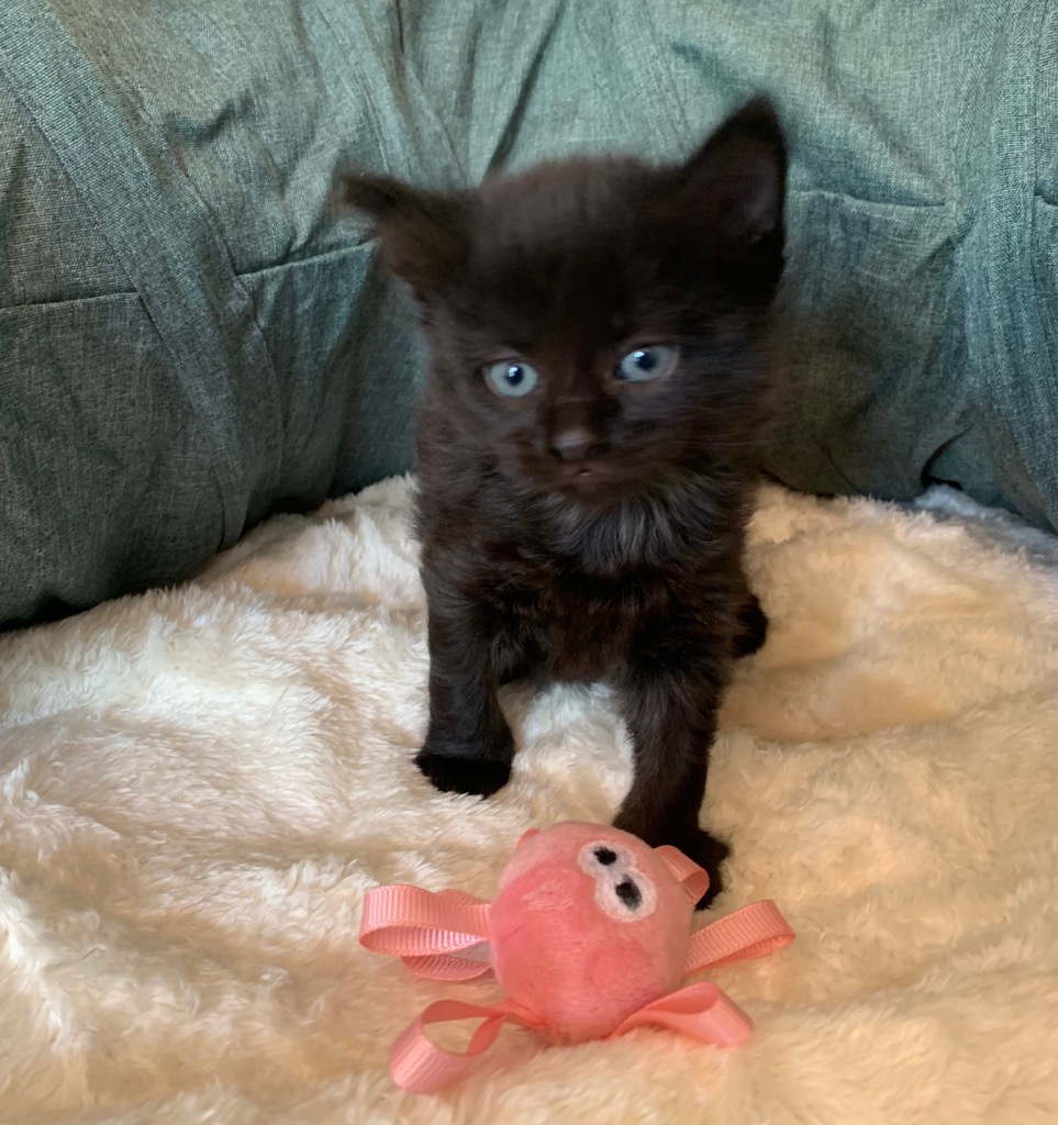Dumped with siblings and mumma Grae - Rebel is the only female kitten in the litter; is a sweet little kitten loving the indoor domestic life, food, cuddles and toys. Loves a wrestle with his siblings - adoption to a home with a sibling or lonely kitty looking for a little friend.