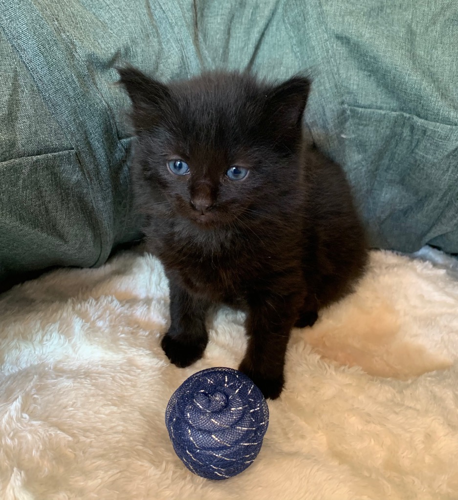 Dumped with siblings and mumma Grae - Trouble is trouble with a capital T - leading his siblings astray in adventure but is a sweet little kitten loving the indoor domestic life, food, cuddles and toys. Loves a wrestle with his siblings - adoption to a home with a sibling or lonely kitty looking for a little friend.