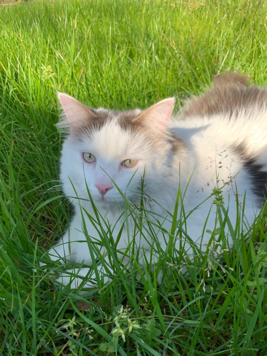 Being a long haired cat he needs regular grooming and a little extra care. He also needs a strict diet and is currently working towards a healthy summer bod.