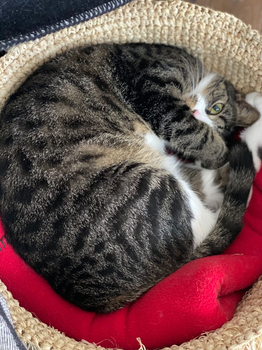 Lola is a sweet young lady who will make you smile with her playfulness and cheeky nature. She absolutely loves having a human to follow around. You may find her hiding under your bed, waiting to jump out as you go past, chasing toilet rolls or hiding in paper shopping bags- a mistress of stealth this one! Lola is a healthy, litter-trained, indoor cat who keeps herself in tip-top shape with some weight training, moving her water bowl during the day- sometimes you might come home to it in a totally different room.