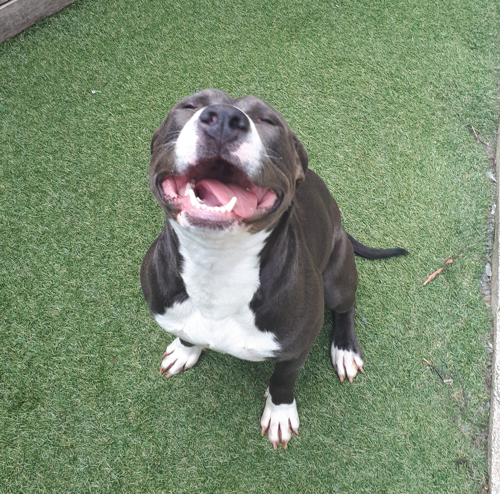 This is Envy. As you can see, Envy has a great big beautiful smile and she isn't afraid to show it off! Envy thinks everything is fun, interesting and meant for play, especially you! Take Envy for a big walk every day and get creative to give her things to do! Envy is best suited to be the only pet in your home, as she wants your love all to themselves! Envy has lots of puppy tendencies and will need someone to put in the hard yards with them. Envy would be best suited to a mature adult home that is familiar with big bouncy dogs.