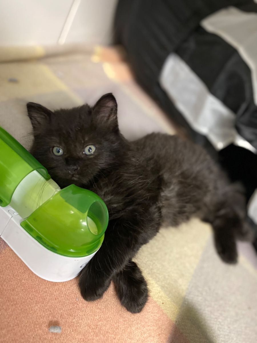 Chips is an 8 week old Black Male Domestic Medium Hair Kitten.