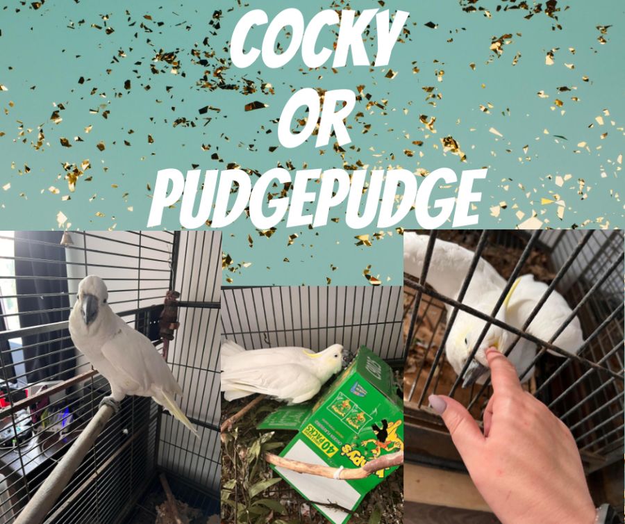 Cocky needs a diet of vetafarm nutriblend pellets, seed and muesli as treats/in moderation, fresh fruit and vegetables, lots of natural branches and native foliage, foraging opportunities, shredding opportunities and fun toys.
