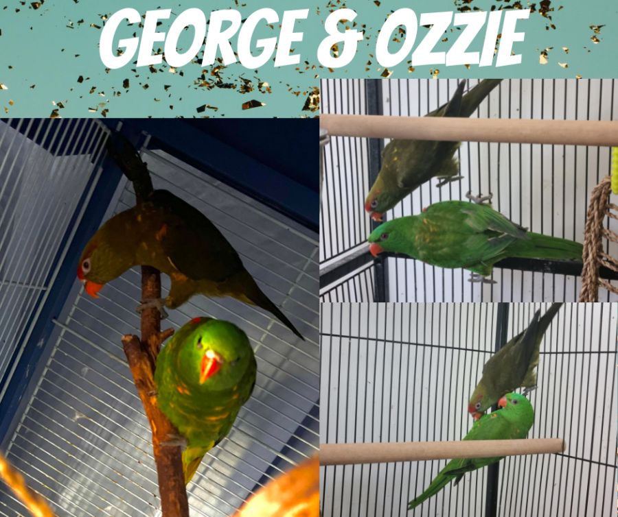 George and Ozzie will require a home with lots of time out of the cage with his new family, a large spacious cage full of toys, natural branches, fresh native foliage, fresh drinking and bathing water at all times.
