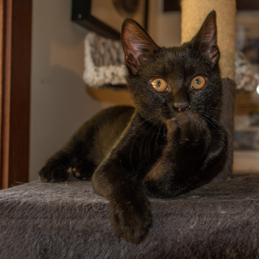 Hello my potential new home, My name is Bobbie please do not be fooled I am a little girl born with no tail hence the name. I am smaller then most cats but don't worry I can still hold my own and I make up for it with personality. Since I came into SAFE I have made friends with other cats but it takes some time, I met one dog too but I wasn't really happy about it maybe I just need a much longer and slower introduction. The rest of the day I do like to explore, get into everything to try have some fun before retiring to a window sill to watch the outdoors and have my daytime naps. At night I like my plush bed beside one of my humans pillows so we can snuggle together.