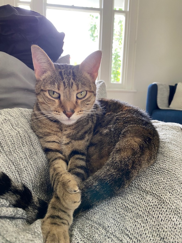 As a lap cat, I love nothing more than a snuggle with you in the evenings. I enjoy playtime, including mouse toys and playing fetch. C'mon, throw it already! I am a bit of a Dora the Explorer in a safe, contained garden. I love sunbaking and using my scratching post too.