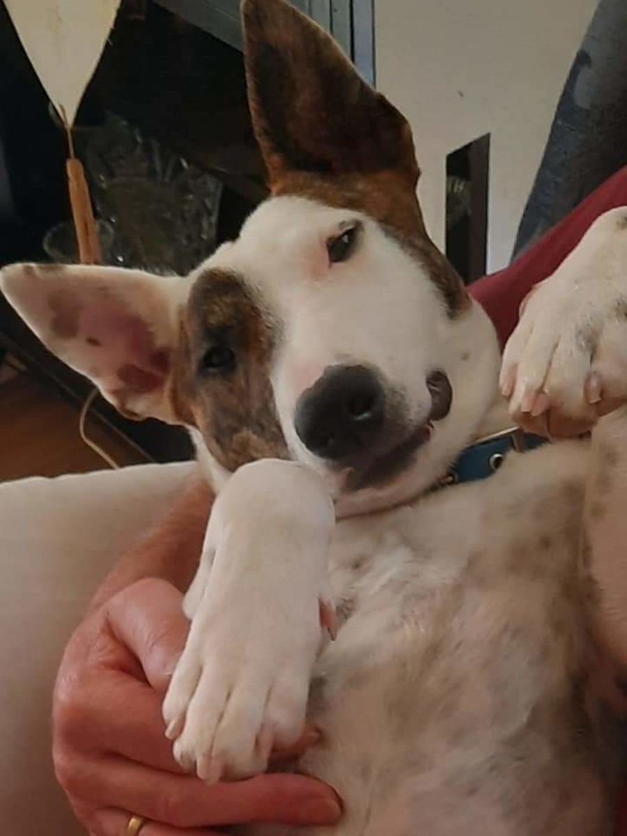 She is a one year old bull terrier x maybe Jack russell or kelpie? And is still very much a puppy in her behaviour. She jumps up when excited and still mouthy.