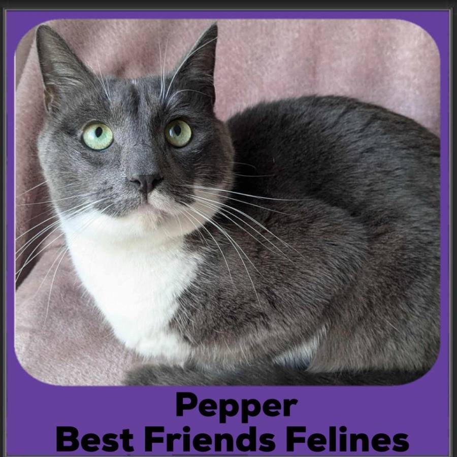 This beautiful boy has come a long way from the terrified street kitten he was when he came into care. He is now a total snuggle bug and while he is timid to start once he knows you he loves nothing more than being picked up and snuggled. Pepper is a petite boy who just wants to be loved as much as possible and some occasional play with a laser pointer. He gets on well with most of his foster siblings (and tolerated his canine companions) but is desperate for a home of his own so he can be the centre of attention.