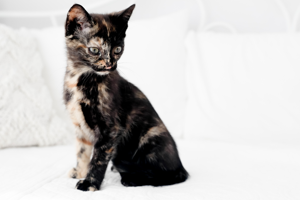 Grace is a sweet little girl who often likes to stand back and take in the world. She is curious and her little mind is always ticking over. If her humans go somewhere else within the home, she will follow them to see where they are going and what they are doing. She is very playful and loves the kitten toys, any and all of them are super fun. She is also very taken with the big cats in the home and will try to snuggle up with them. She loves her zoomies, skidding around the house when the mood takes her. Grace loves to nap on the couch and is always happy to lap up pats from her humans, purring loudly and happily.