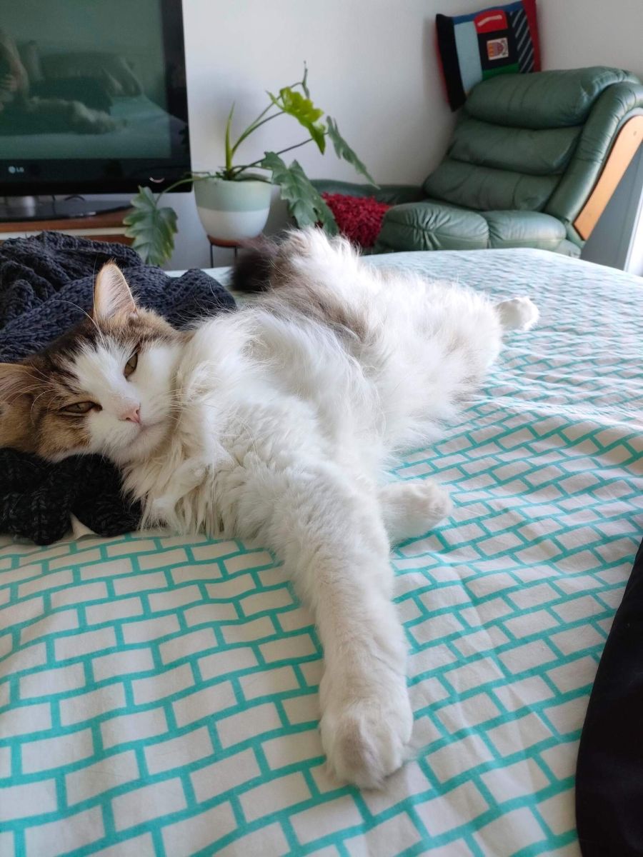 While his favourite hobby is lounging around all day long, once you are home he will seek out attention and will jump on your lap for a cuddle or a brush.
