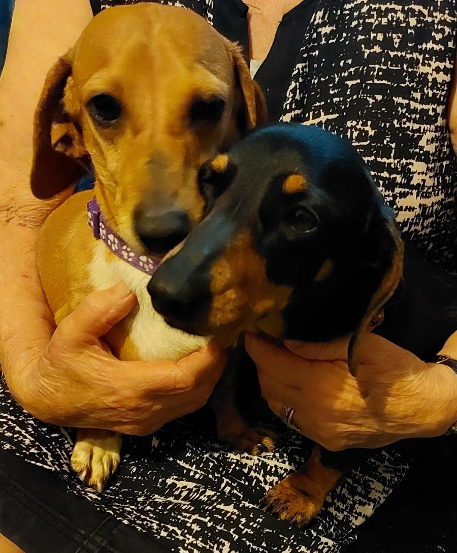 Britney and Dash are a beautiful pair of Dashys they would love to get home together as they have bonded and really love snuggling up together they are typical Dash hound so full of life and very curious about it I would not recommend cats as they seem to be cat reactive and life would be so much easier with Dash and Britney without cats