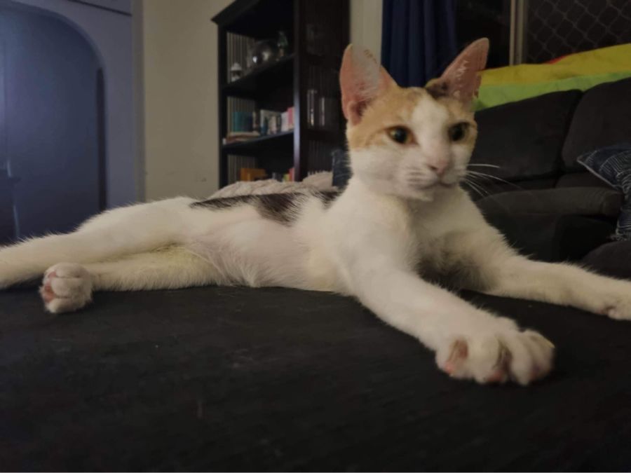 Margaret is a super sweet kitten, looking for a home where she is able to get lots of pats and scratches. She will grab your hand with her paws until you pat her first thing in the morning. She will often jump on the bed at night to snuggle up to your legs. She's still not sure on being picked up and will definitely try and get away, but given time she will definitely come around. She gets along well with other cats given the proper introductions and is happy to lay next our large dogs.