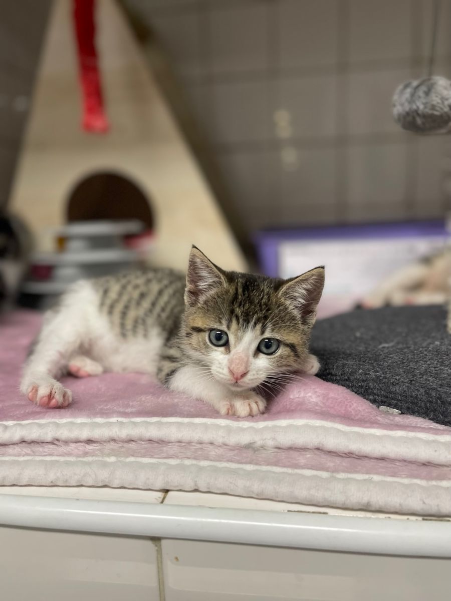 Fernando is an 8 week old Male Tabby & White Domestic Short Hair Kitten.