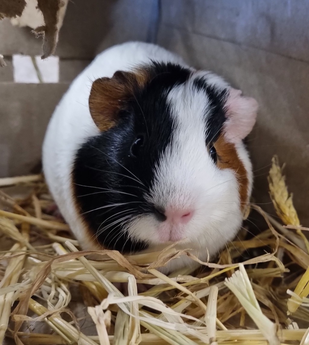 Hey there, Sprite here, a rather delightful Smooth Hair tri colour haired guinea pig. I had a fairly 'ordinary' life before being rescued and brought here to the RSPCA, and I'm now hoping a new family is on the horizon very soon. If you need any convincing on adopting a guinea pig, can I tell you that we're basically lovely: we're very social, enjoying the company of fellow guinea pigs as well as our human companions. We're low maintenance and are an ideal pet for children and those new to the pet world