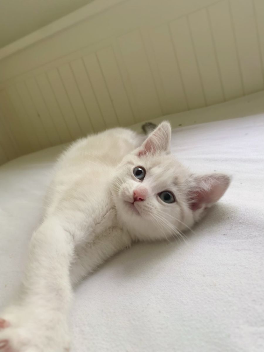 Milky is a sweet girl who loves to play with her siblings. She has light markings and a pink little nose. Milky always enjoys a cuddle and basking in the sun.
