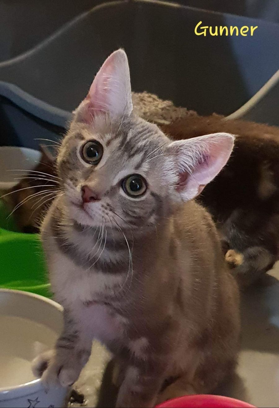Gunner gets along great with other cats, dogs and children.