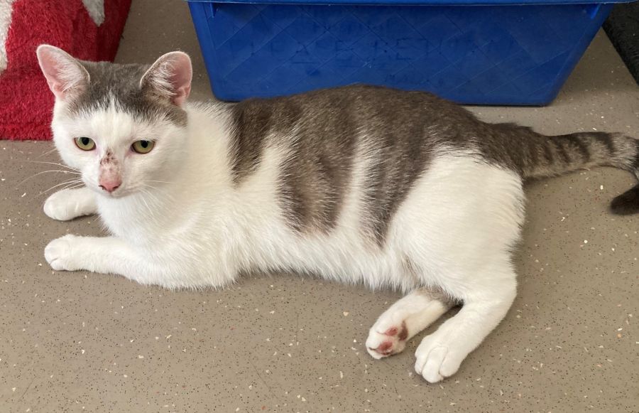 At just one year old Bob is very playful, when he's not relaxing or smooching, and his gorgeous grey tabby and white coat requires no maintenance.