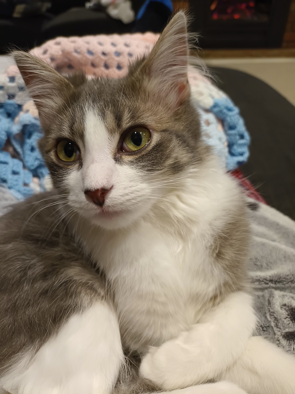 This is Sky; as you can see, she has lovely yellow eyes. She can be shy at first, but with some time and patience, she will come out of her shell and her cute personality will shine. Sky is a young playful kitty; she adores playing with little cardboard balls and dangling toys. She'd like to stay inside with you, and may be okay living with a friendly cat for company. If you're looking for a sweet and loving friend, Sky might just be the one for you!