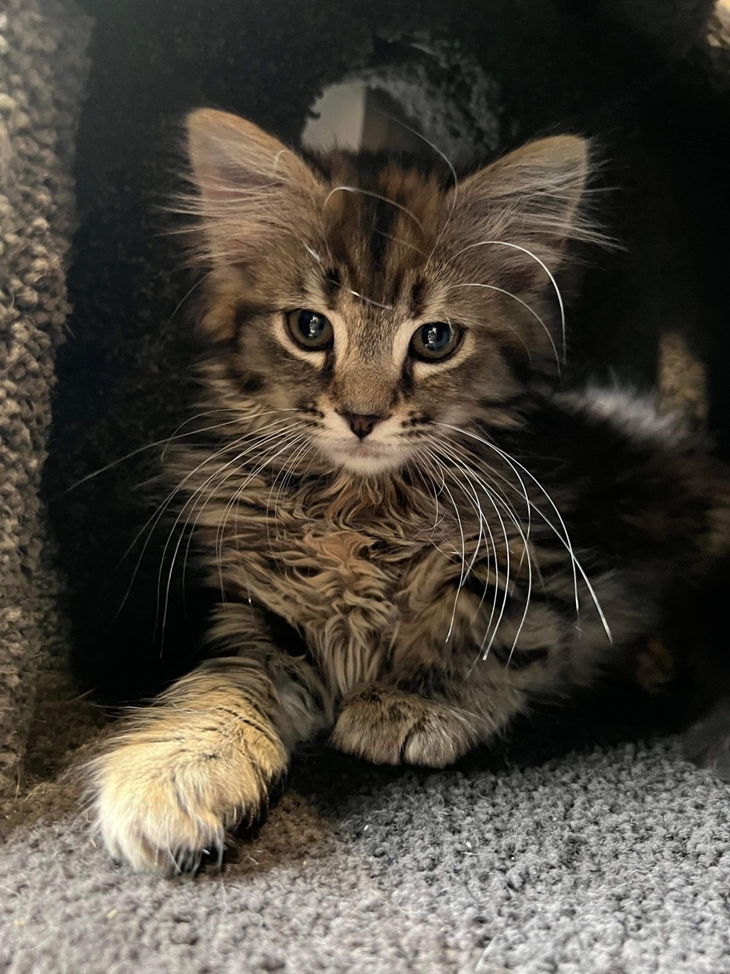 Lock is a beautiful young lady, with her flowing hair and stunning eyes, she is just so pleasant to be around. Lock is currently loving living in a room with her siblings, so another cat in the home would suit this young girl well.