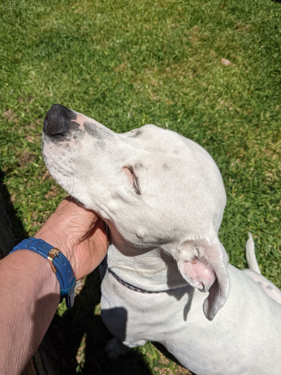 Meet Lego. This guy’s personality is as bright as the colourful Lego blocks. Meaningful relationships are his spice of life, and he knows how to make you laugh. When the sun is out, Lego will drag his bed outside through the doggy door to enjoy the sunshine!