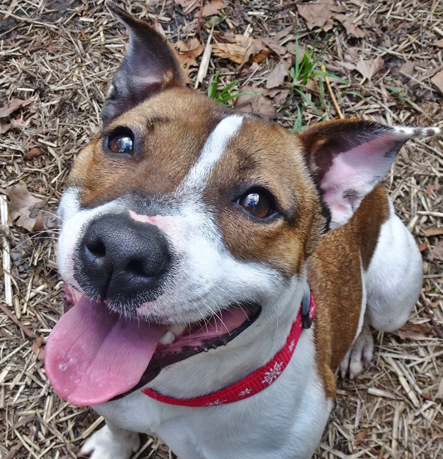 Luna would be best suited to a family who have a love of the English Staffy and have someone at home most of the time to help stop her from becoming obsessive about chasing her tail. She needs to be part of the family, the only dog and be allowed to join in on all aspects of family life. People willing to continue her training and guidance. She will make a beautiful family companion.
