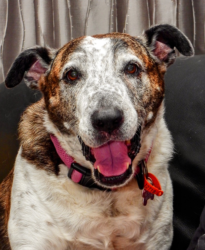 I'm a smart, calm and loving girl, and my carers say any adopter would be lucky to get me. I know how to use a dog door, and I don't stress when left alone, but my carers think I'd do best in a home with another dog and an owner (or family of owners) home more often than not. I thrive on physical touch and I love to be included in whatever you're doing. I'm a big girl (almost 37kg) but my carers keep saying I'm surprisingly easy to walk. I'm aware of my size, and am respectful with little dogs, but if a doggy companion of similar size wants to play, I'm happy to oblige and I can still play like a puppy.