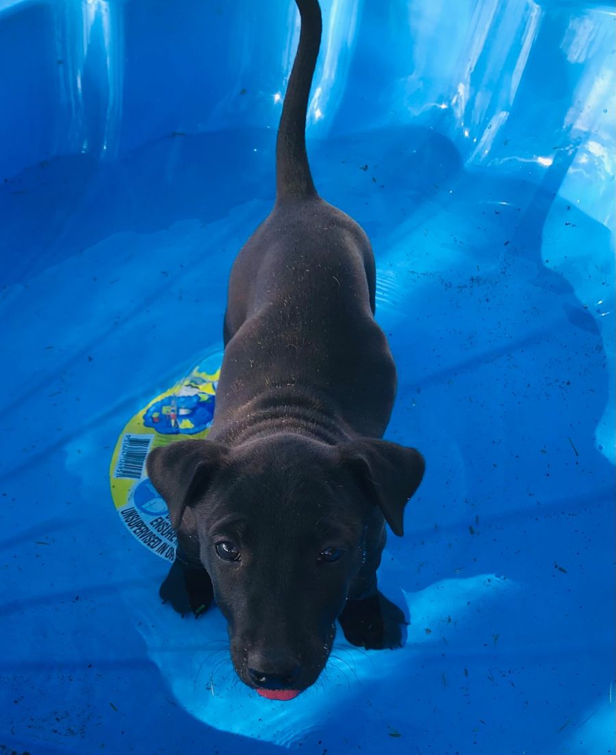 Pixie is a really sweet little girl who loves her toys, loves to play and wrestle and run around with the other pups, but also loves some lap time and soft cuddling with her human friends.