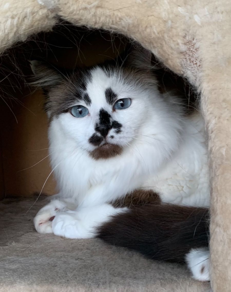 Chloe is a 4yr old fluffy Ragdoll X with bright blue eyes. This beautiful girl has grown up in a family home with teenage children, cats and dogs. Unfortunately in this current rental market crisis, she was surrendered when her owners moved. Her favourite thing in the whole world is to sit on a sunny window sill and watch the passing day. She loves her head rubs and pats, rewarding you with the sweetest little purr. She loves her food, requires routine brushing, and is litter trained. She comes desexed, microchipped (#991003001346234), vaccinated, wormed and with flea prevention. Located at Gorokan for Claws n Paws Rescue 💗