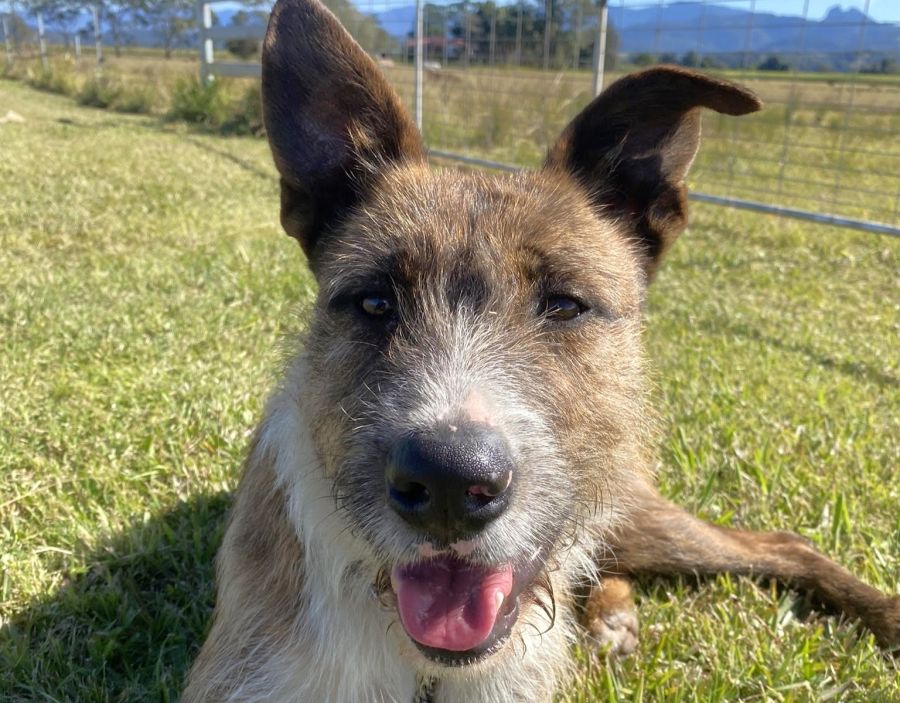 Baxter is a handsome male Smithfield Wolfhound mix who will steal your heart with his wonderful bendy ears and stumpy tail!