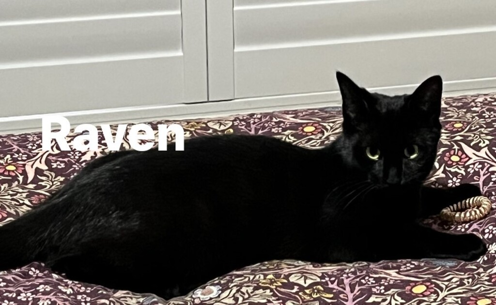 Raven is a quiet girl who absolutely loves her food. She loves to share your bed and get pats, often she will gently nudge for more then settle beside you to rest. She would love a home with another feline friend. She loves her little foster sister and adores the resident Tabby. She loves playing with toys and is a fan of the large cat tree where she can watch over the comings and goings in the home.