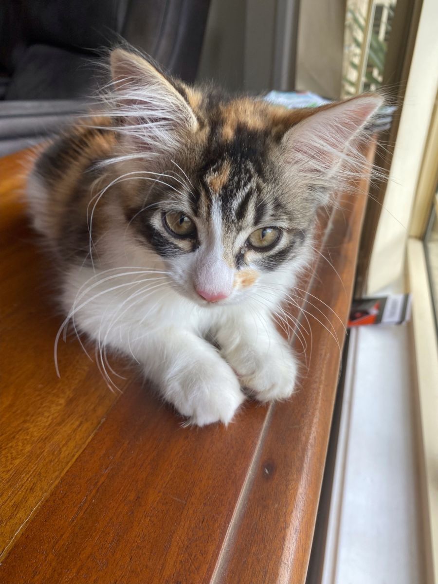 Are you looking for a kitten that loves cuddles and is gentle when playing? This sweet little girl is a calico medium hair.