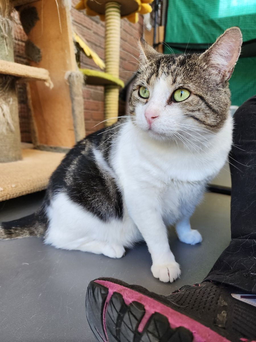 Hugo is a big sweet boy who loves human attention, he is fine with other cats and just wants someone quiet who Is home alot for him to settle down with.