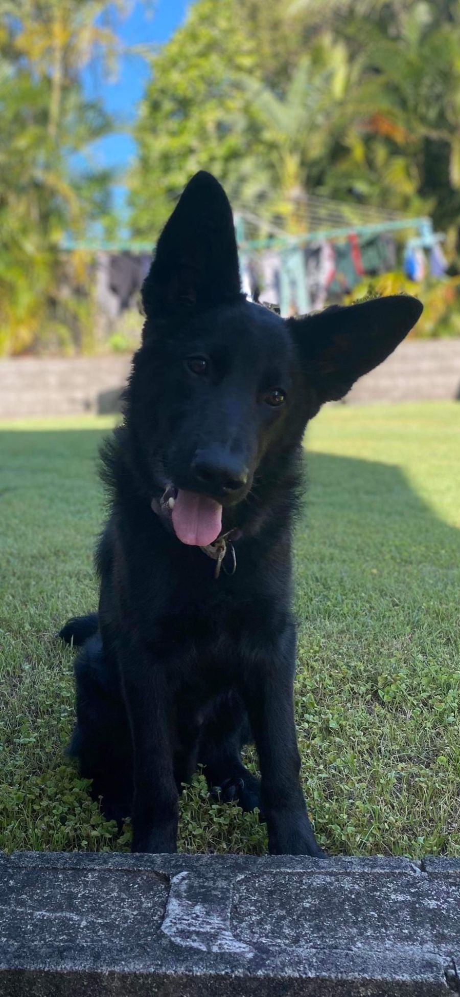 Jet loves to run around the backyard with the kids playing hide and seek and playing with the palm fronds! He can be a little shy on his walks with people and his surrounds. However, if you take him to your kids' sporting events, he is friendly to all humans.