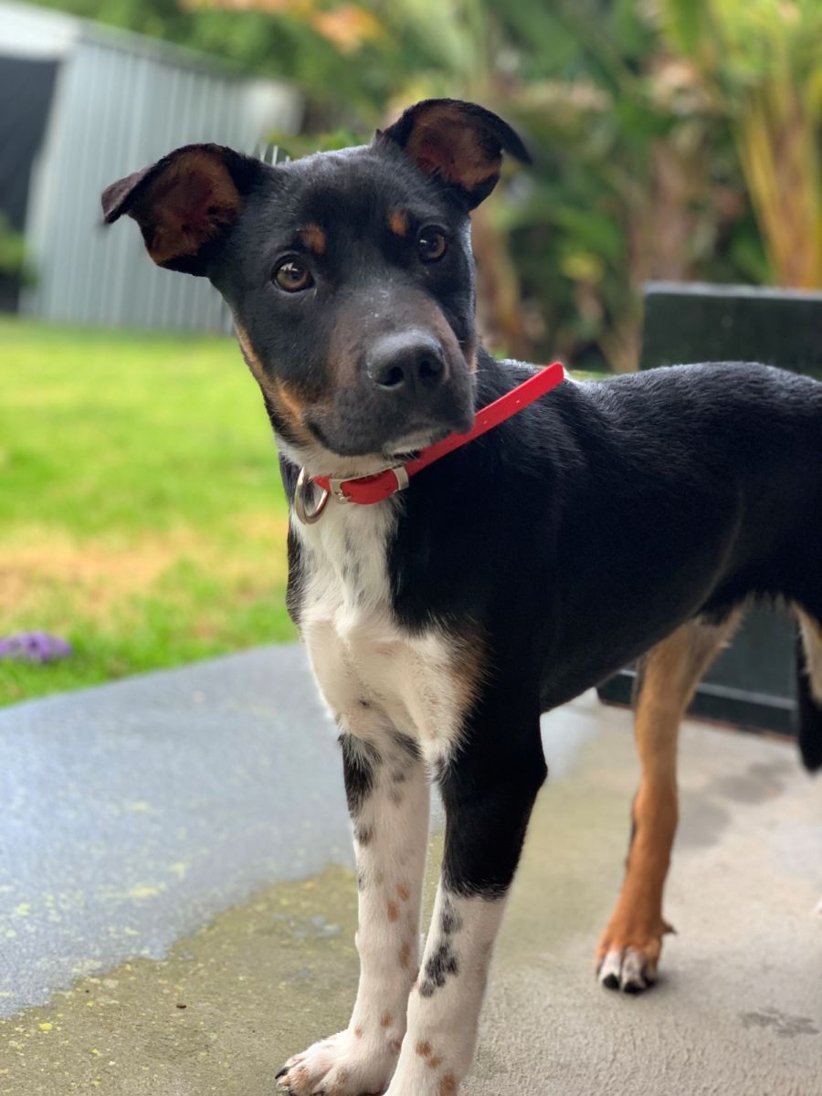 Beau is a beautiful, sweet & shy 19-week-old Kelpie x Australian Cattle Dog boy. His unique markings always get admiring comments as he has stunning ‘cookie’s & cream’ speckles on his front legs and traditional Kelpie black & tan back legs!