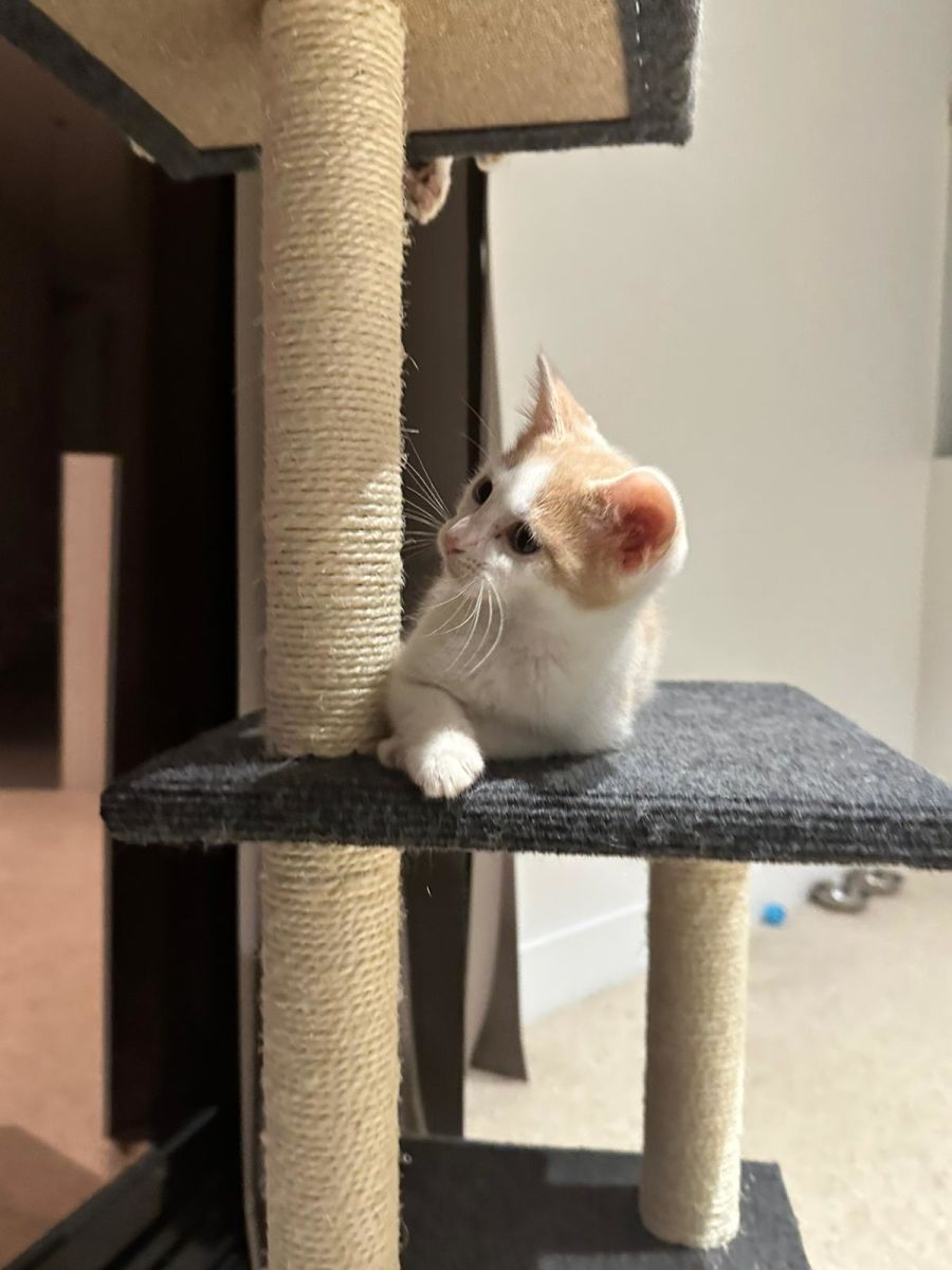 I'm sweet and playful, I get along with other cats of course as we were quite the pack. I like to climb my cat tree and take naps, they are important to recharge and be able to play over again.