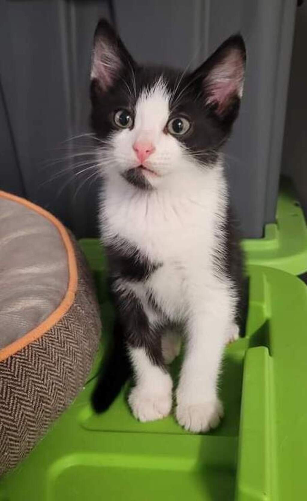 Handsome Domino is ready to find his forever home. Domino is a super sweet and gentle soul. He's a very active kitten, full of energy and he loves playing with his toy mice, balls and wands. You will also find him fast asleep curled up on a bed or in the cat tower.