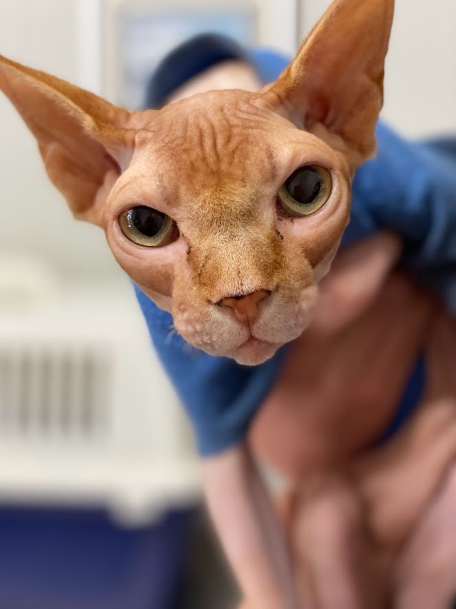 Puddy has recently come into our care after his owner became sick. He's a Sphynx cat and listed on his paperwork as a Lilac Lynx Point. He has been used to being an only cat, but we feel given time he will be ok with another cat to sit with.