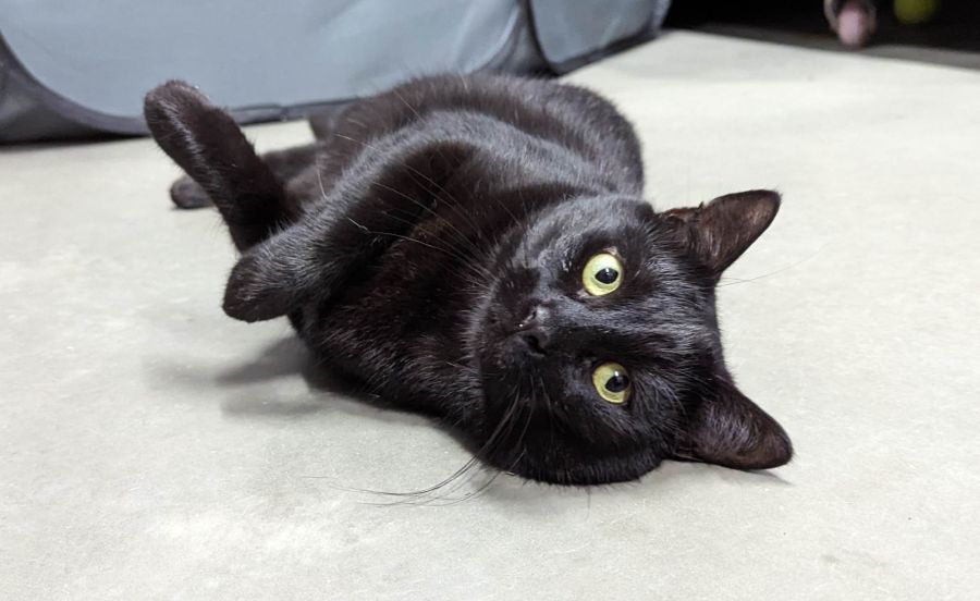 He has been socialised with both cats & kittens, however he does prefer kittens to adult cats. He's turned into a beautiful natured foster dad for multiple litters of kittens, to the point where he is now permanently housed with a litter of kittens.