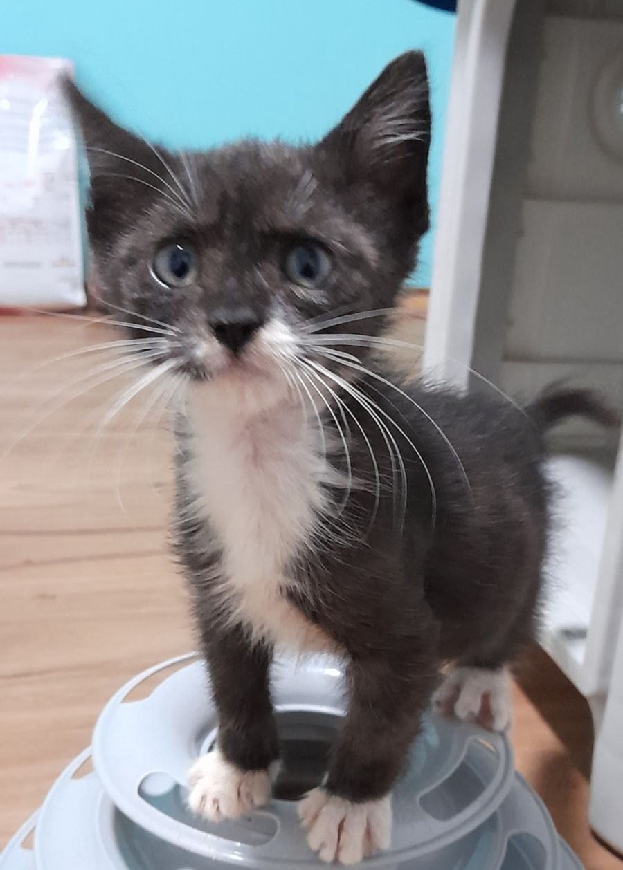 Kiki is a gentle kitten that loves to be patted and cuddled. He likes to purr in your arms and give you little nose kisses; he is such a sweet little boy who craves human interaction.