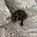 When startled Sonia does a great Meerkat impersonation. She is a beautiful cheeky girl who will suit most families and is good with her foster carer’s dog. So a small, cat-friendly dog buddy would be fine.