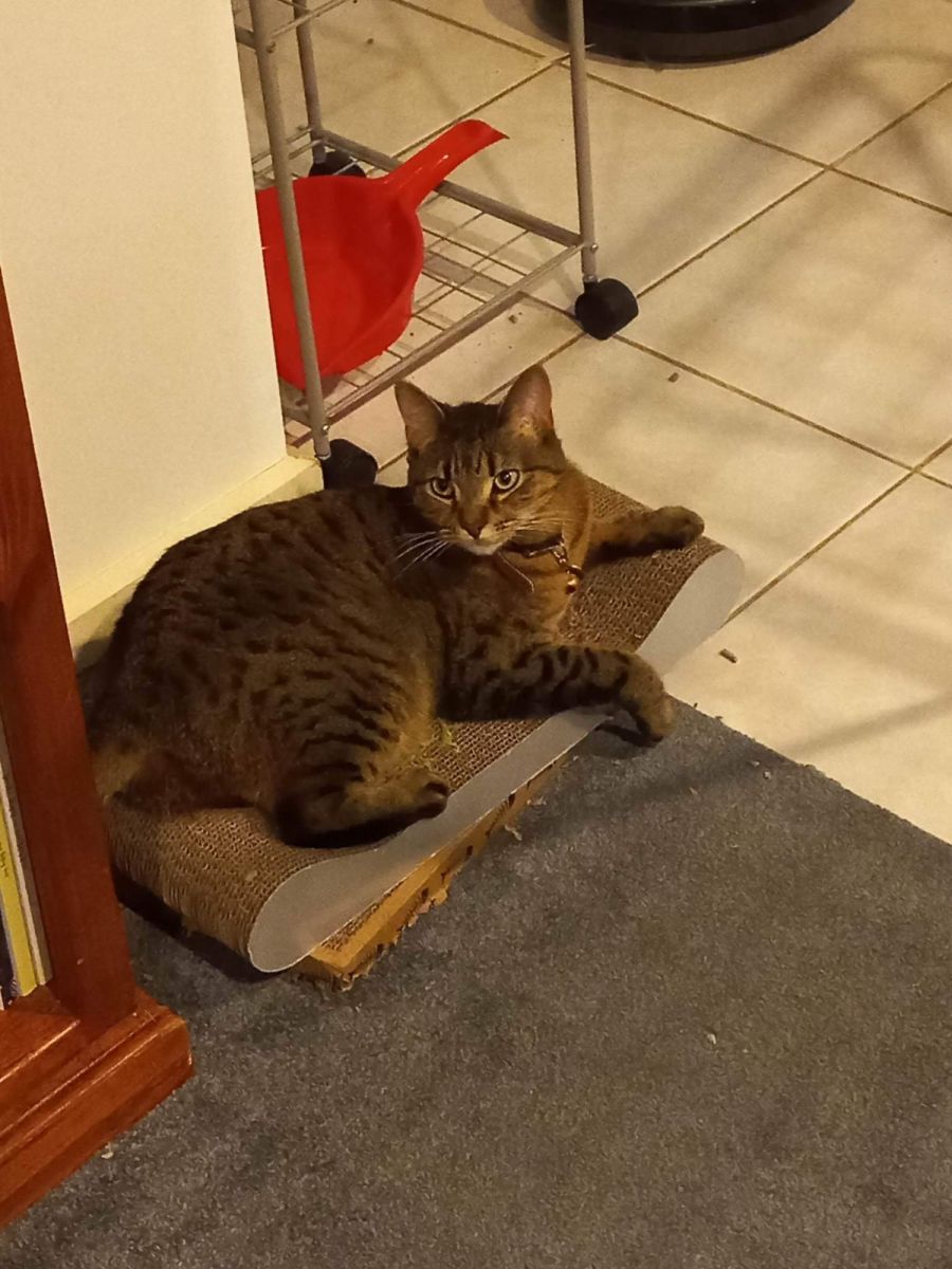 Mini is still young and full of spunk, so expect lots of playful energy and zoomies. She's also a very clever cat who has worked out how to open doors with a bar handle and is working on turning knobs as well - but she only does this when she wants to be in the same room as you.