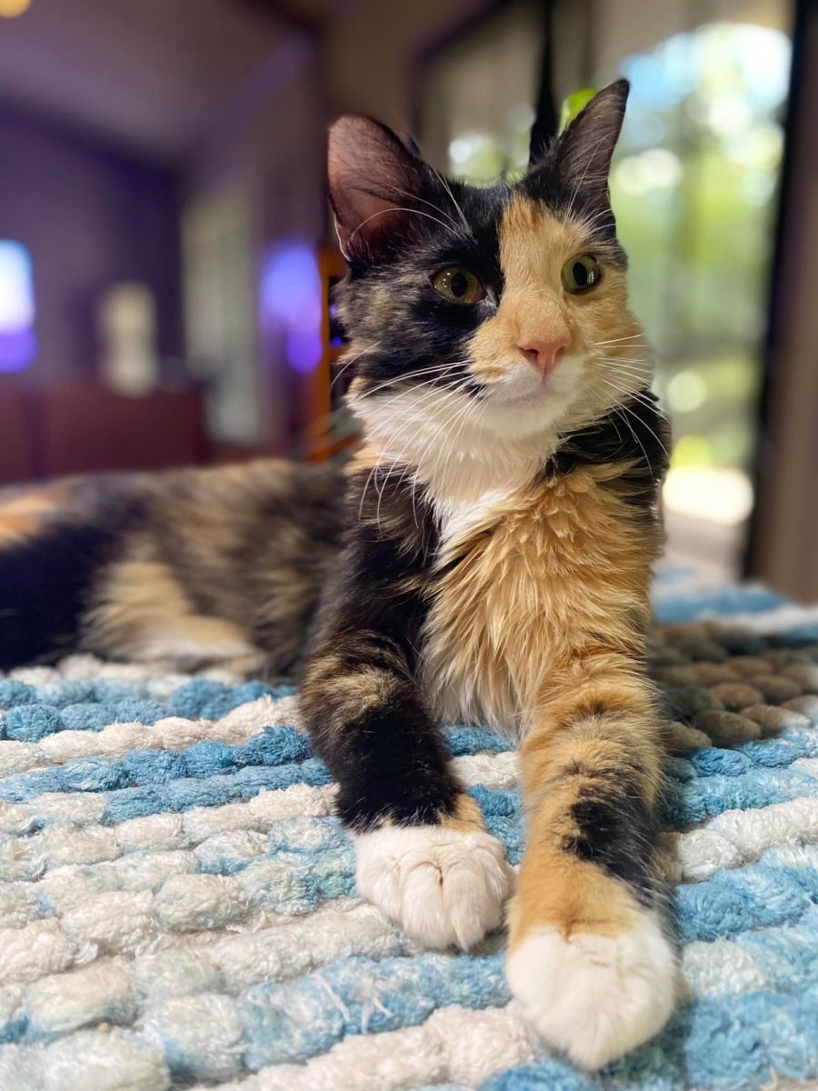 This quiet, timid beautiful little girl is starting to gain some confidence in people but adores other cats and is happy jumping at the biggest of cats for a play and gaining confidence with dogs. She'll need some TLC whilst she gains in confidence and is never far from her humans and comes out when she feels safe to get cuddles from her trusted humans <3