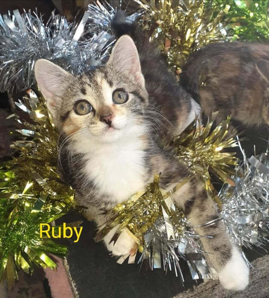 Ruby is learning to live with other cats and dogs, eating well, very playful and happy.