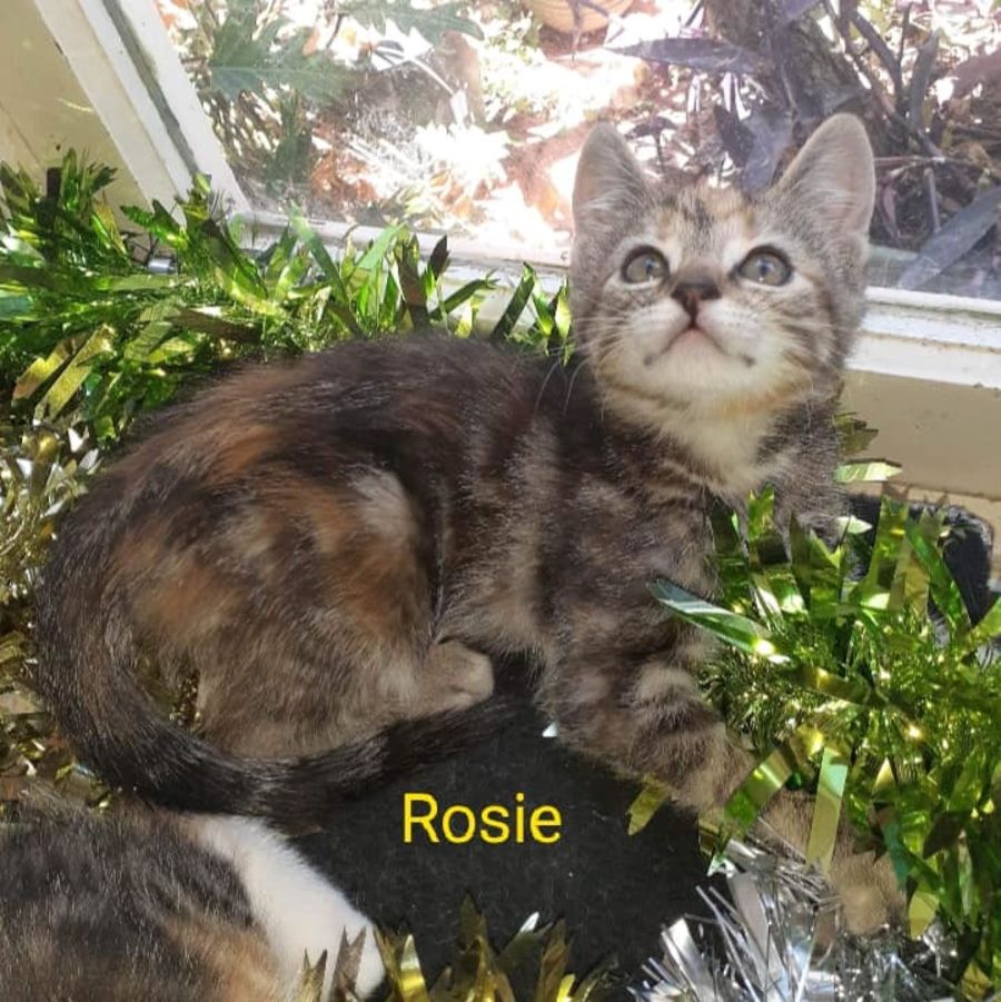 Rosie is learning to live with other cats and dogs, eating well, very playful and happy.